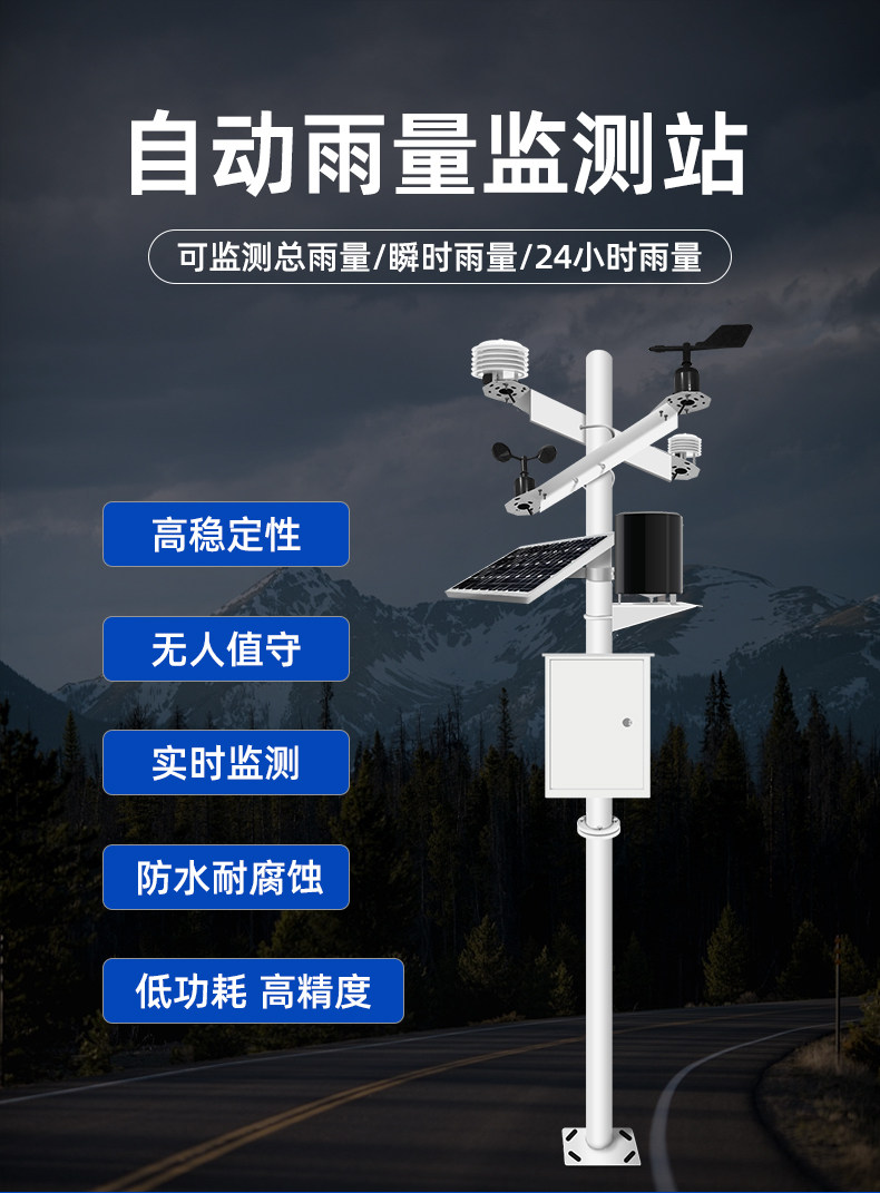 雨量监测气象站风速风向降雨降水量检测一体化微型自动降雨量监测
